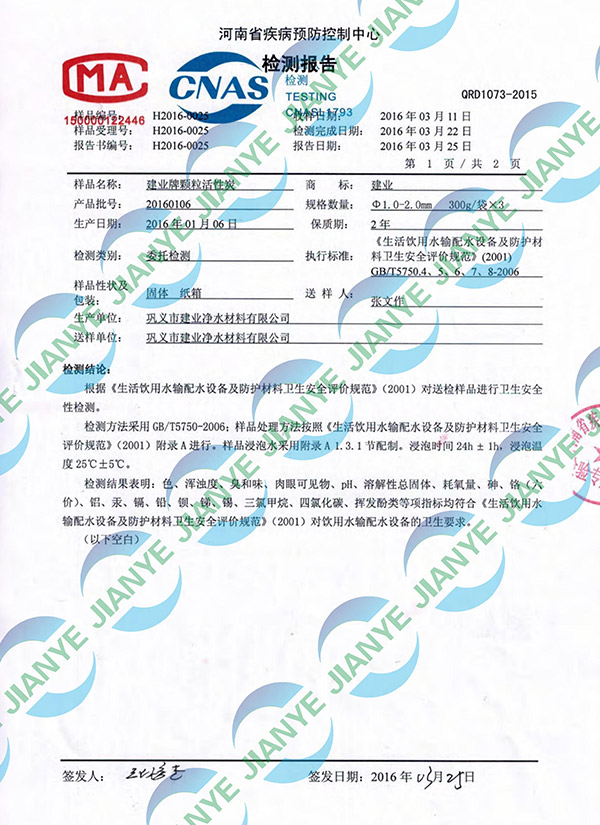 椰殼活性炭廣東分析檢測【建業(yè)凈水】