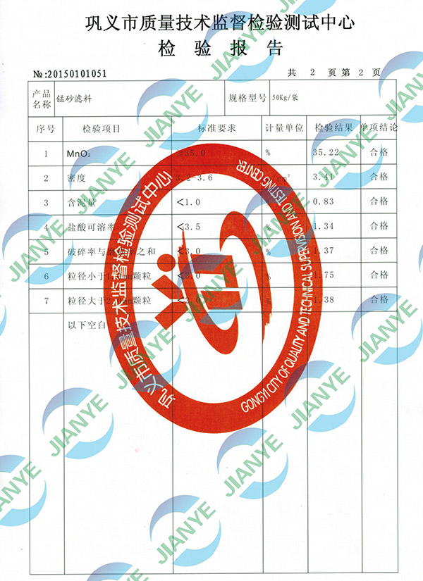 2020錳砂第三方檢測報告【建業(yè)凈水】