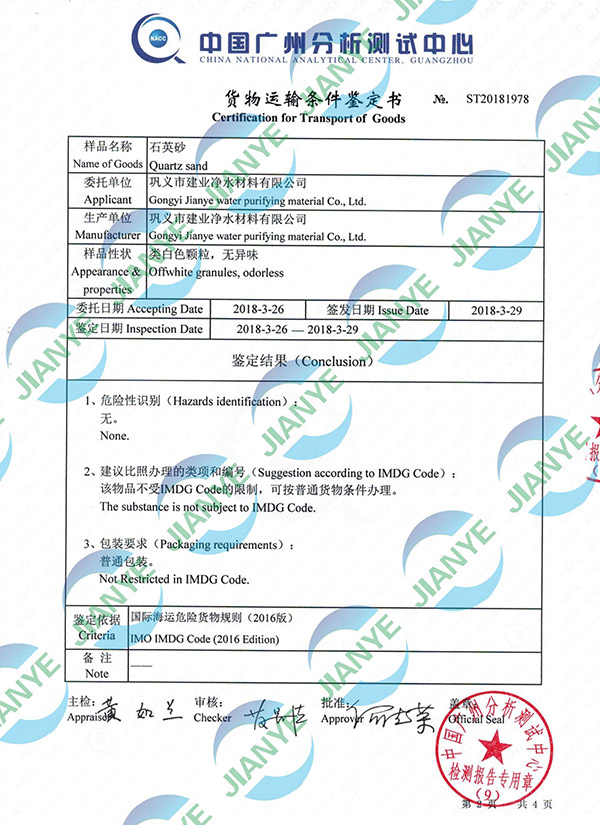石英砂防疫站檢測報告【建業(yè)凈水】